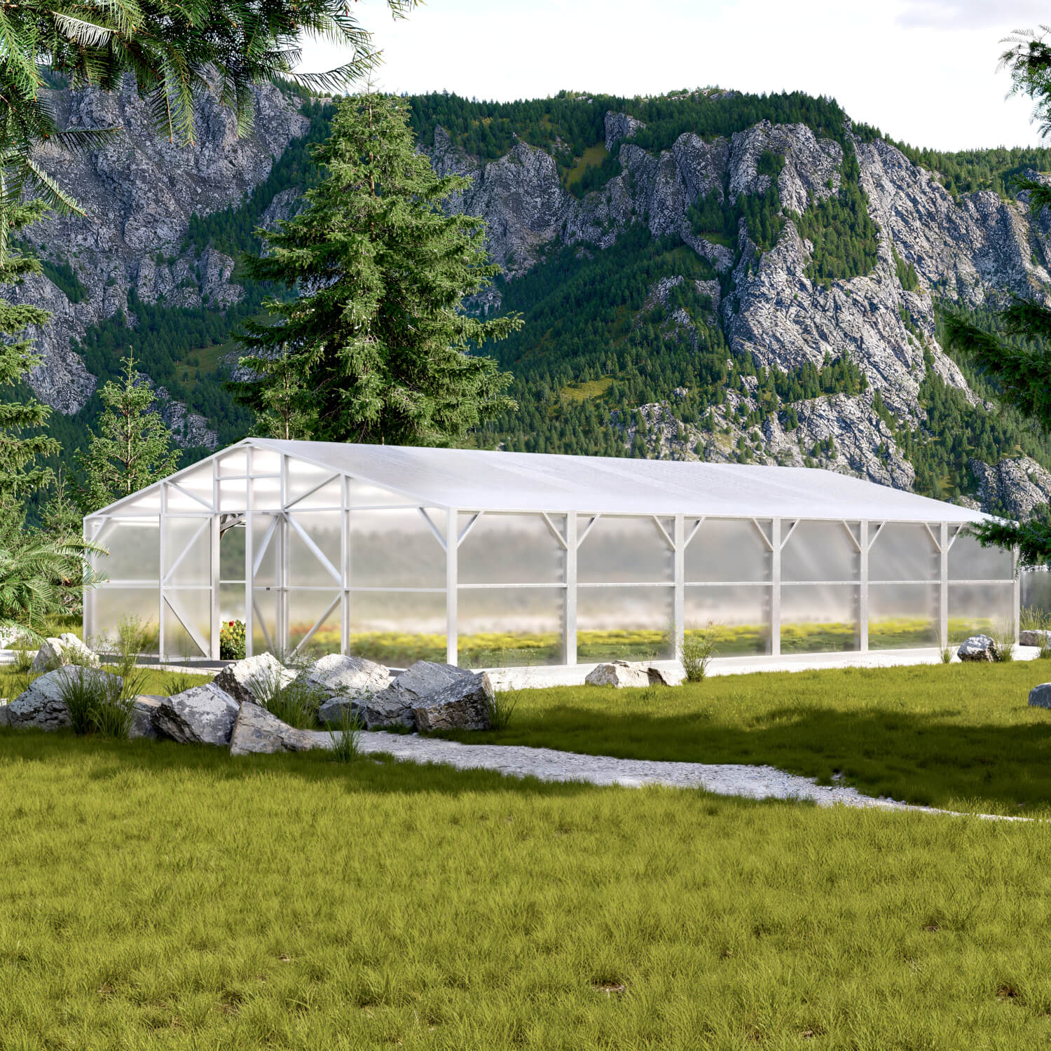 - Hochwertige Polycarbonatabdeckung: Ausgestattet mit 10 mm bis 16 mm dicken Polycarbonatplatten, die für hervorragende Isolierung, Lichtstreuung und Temperaturregulierung sorgen.